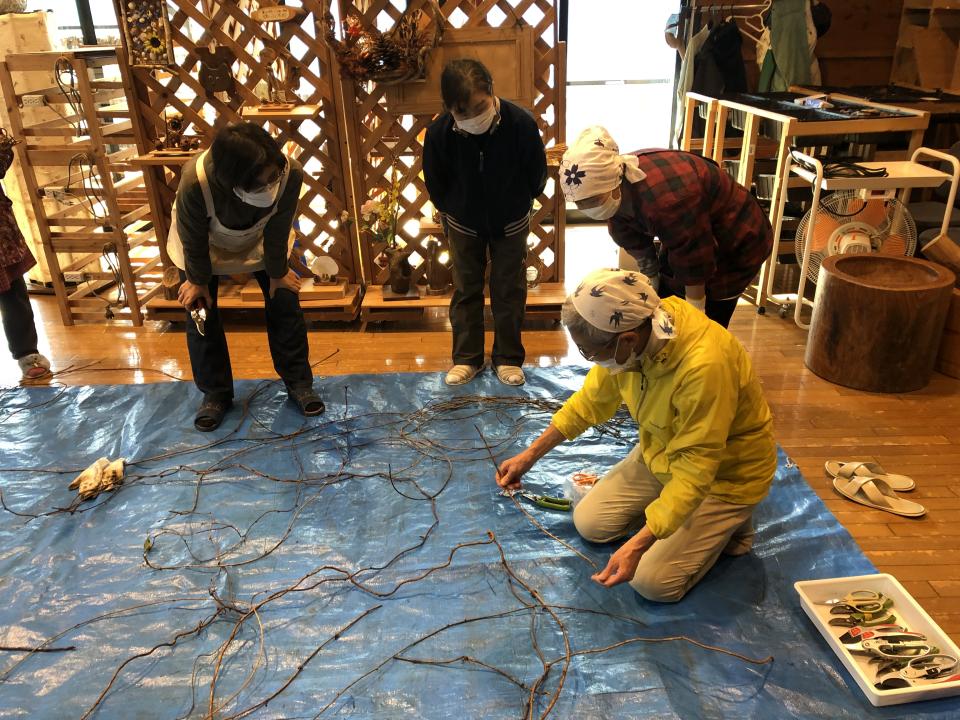 この時期恒例のつる編み研修会。いいものできました!