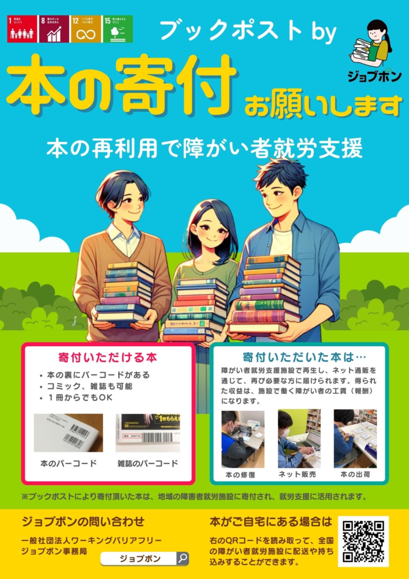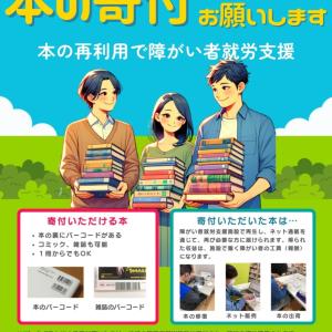2025年9月30日(火) 本の寄付をお願いします! 本の再利用で障がい者就労支援に協力しています!読まなくなった本などありましたら、木もれび館で回収しておりますので、お持ちいただければ幸いです! す!